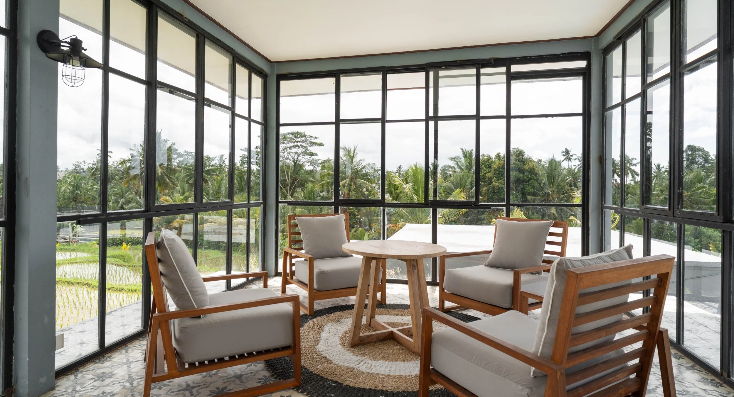 A cosy lounge, the heart of the retreat centre, offers a relaxing space to unwind, enjoy meals, and build connections. With stunning views of the rice fields from the second level, it’s the perfect spot to sip complimentary herbal teas, read a book, or simply take in Bali’s breathtaking beauty. A true home away from home, the lounge invites everyone to relax on the sofas and share meaningful conversations about yoga, life, or anything in between.
